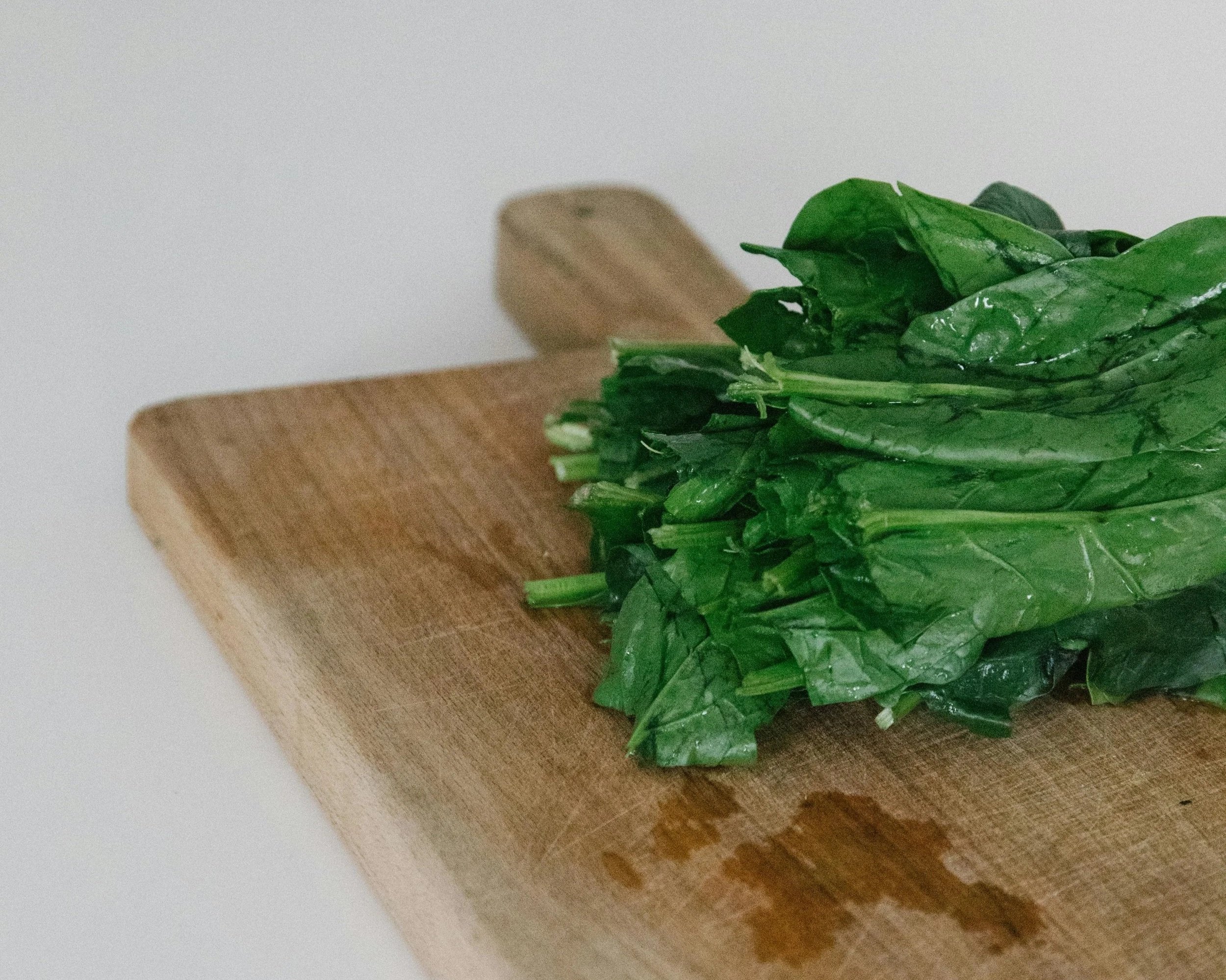 Consume muchas verduras de hoja verde: ¡idealmente al menos 5 porciones al día! La alta cantidad de clorofila que contienen verduras como las espinacas, acelgas, la col rizada (kale), el apio, la mostaza, las hojas de remolacha, arugula, y el brócoli es una excelente fuente de hierro. Nota: Es mejor consumir espinacas cocidas, ya que las hojas crudas contienen ácido oxálico, que en exceso puede impedir la absorción de hierro.
